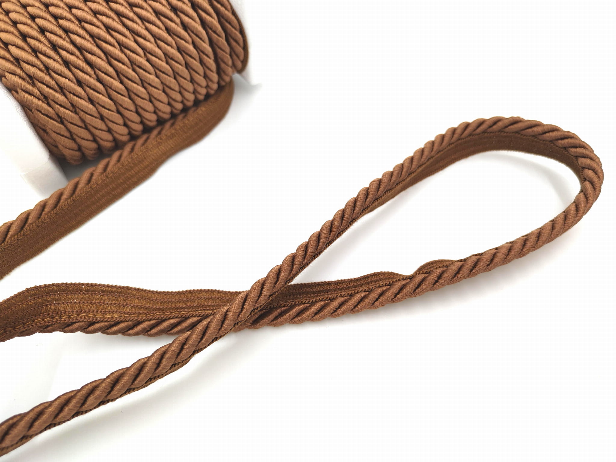 Prezentowany sznurek ozdobny skręcany jest wykorzystywany w tapicerstwie jako element wykończeniowy dla mebli, nadaje się do obszycia poduszek, zasłon, narzut. Wykończenie sznurem ozdobnym dodaje uroku oraz elegancji, a także sprytnie maskuje szew lub pewne niedoskonałości szycia. Wypustka znacznie ułatwia wszycie sznura tapicerskiego.