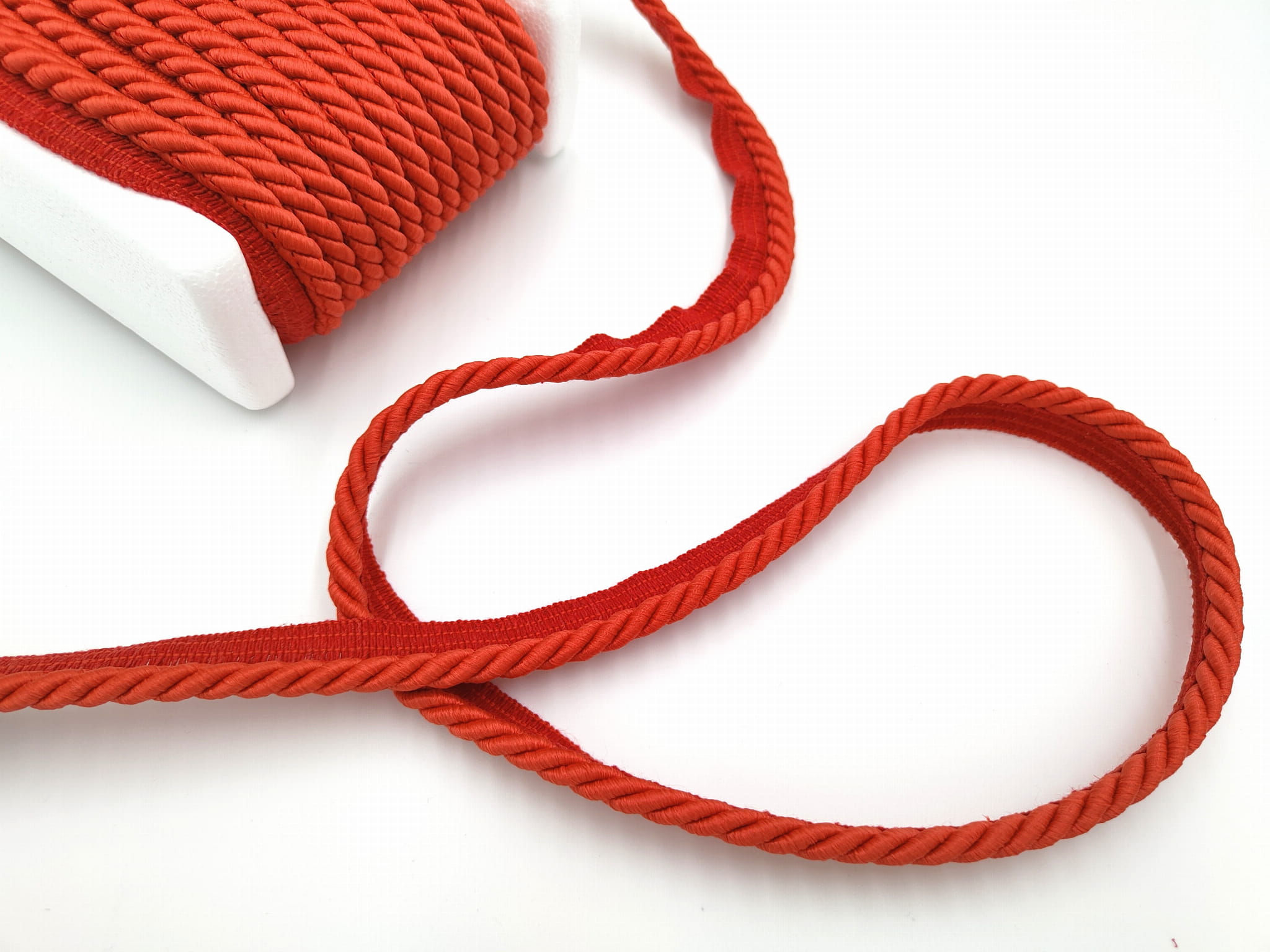 Sznur dekoracyjny w kolorze czerwonym, z lekkim połyskiem.