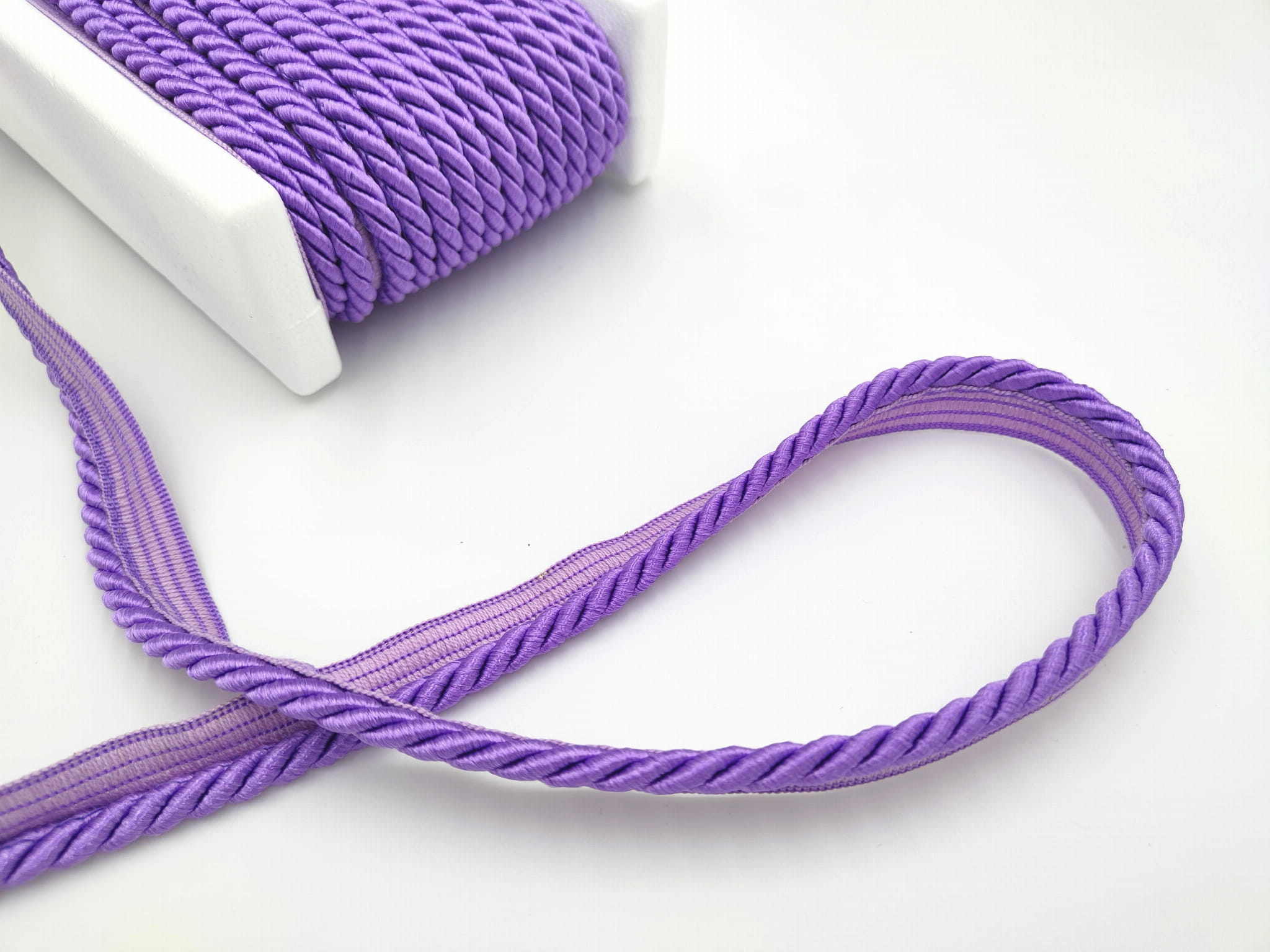 Sznur dekoracyjny w kolorze fioletowym, z lekkim połyskiem.