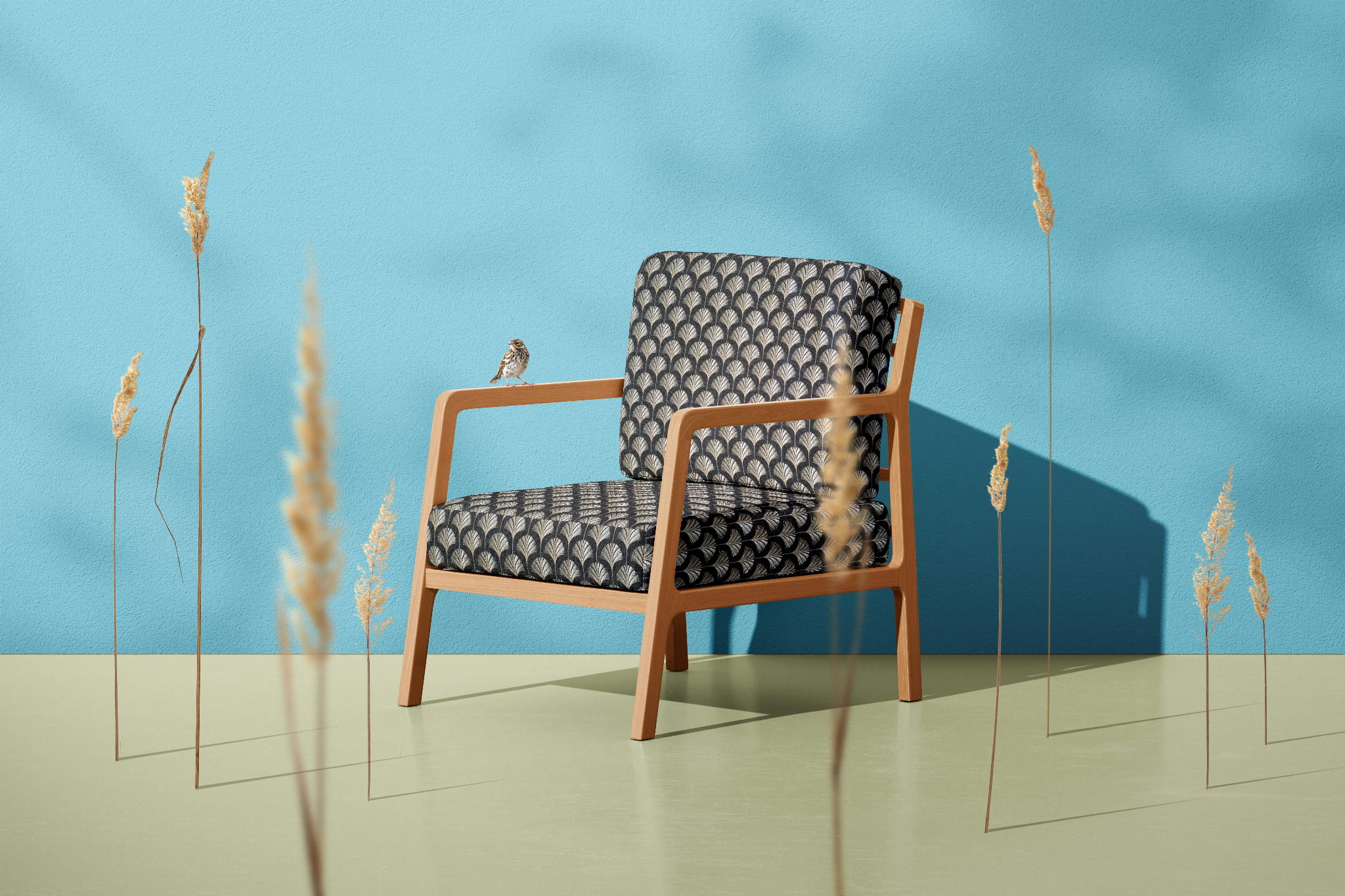 Materiał obiciowy z niezwykle oryginalnym wzorem, który nadaje wnętrzu bardzo ciekawy design.