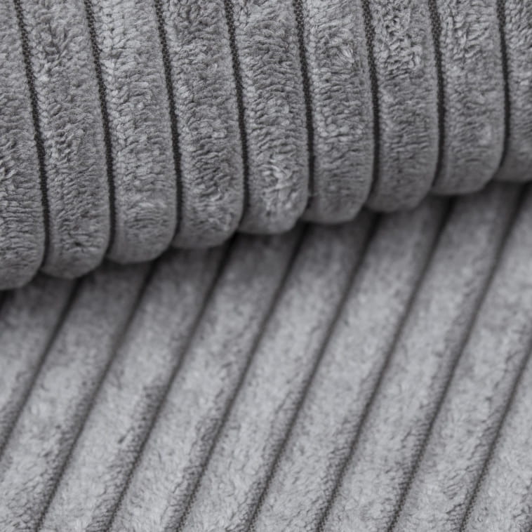 Sztruksowy materiał posiada charakterystyczne pasy, jest trwały, przyjemnie miękki i elastyczny.