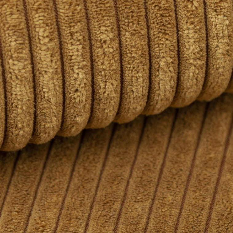 Sztruksowy materiał posiada charakterystyczne pasy, jest trwały, przyjemnie miękki i elastyczny.
