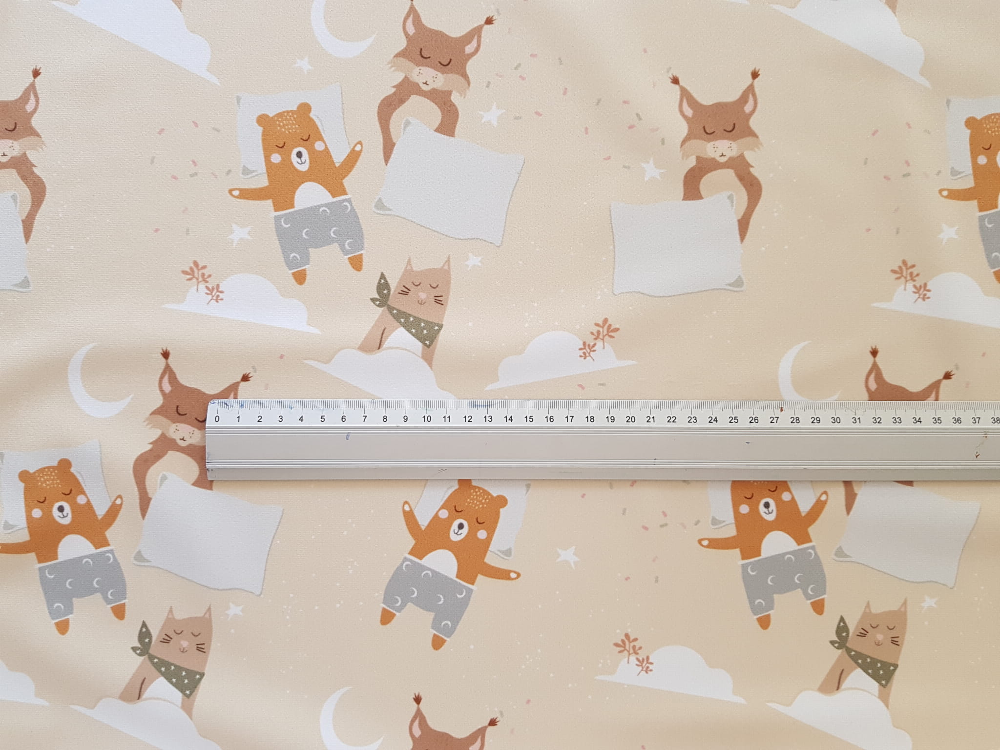 Tkanina tapicerska welur drukowany z nowoczesnym wzorem idealnym dla dzieci.