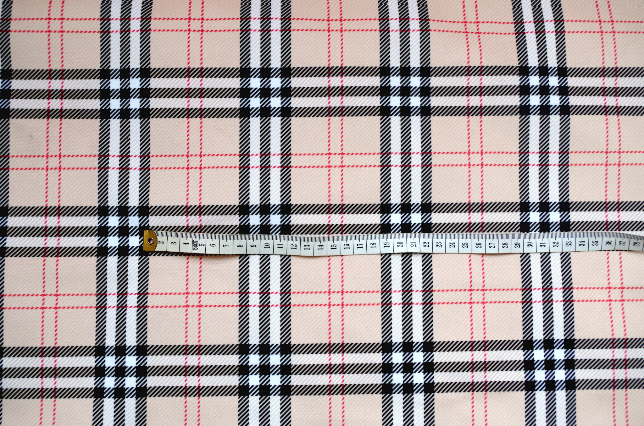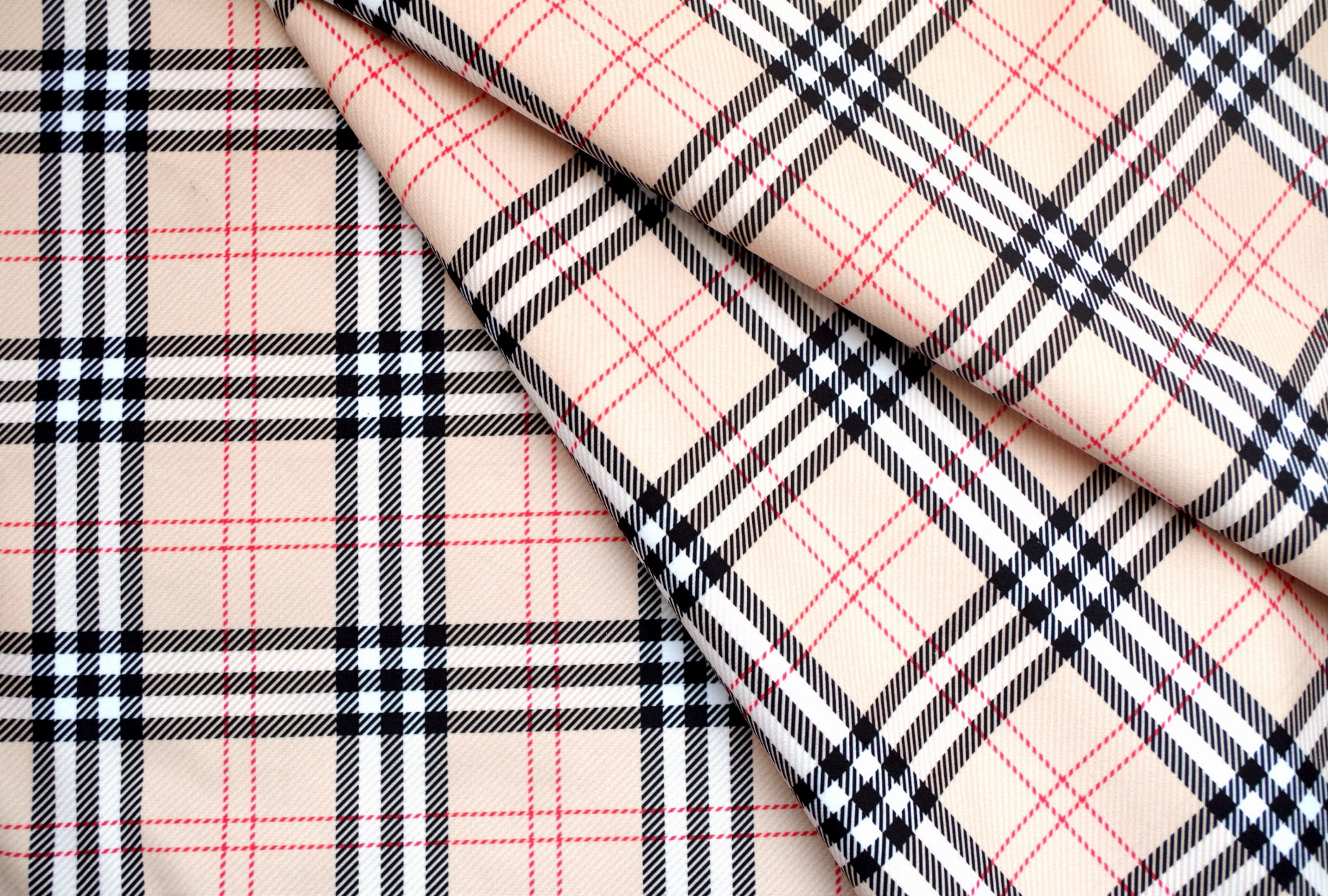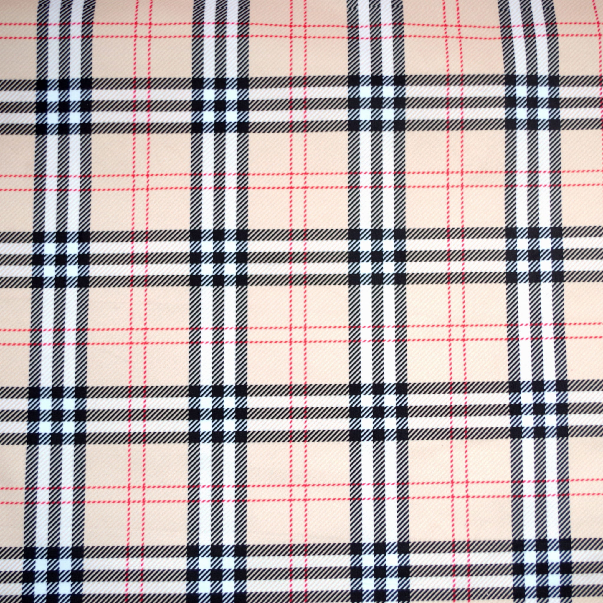 Tkanina tapicerska z ponadczasowym wzorem szkockiej kraty w kolorze beżowym.