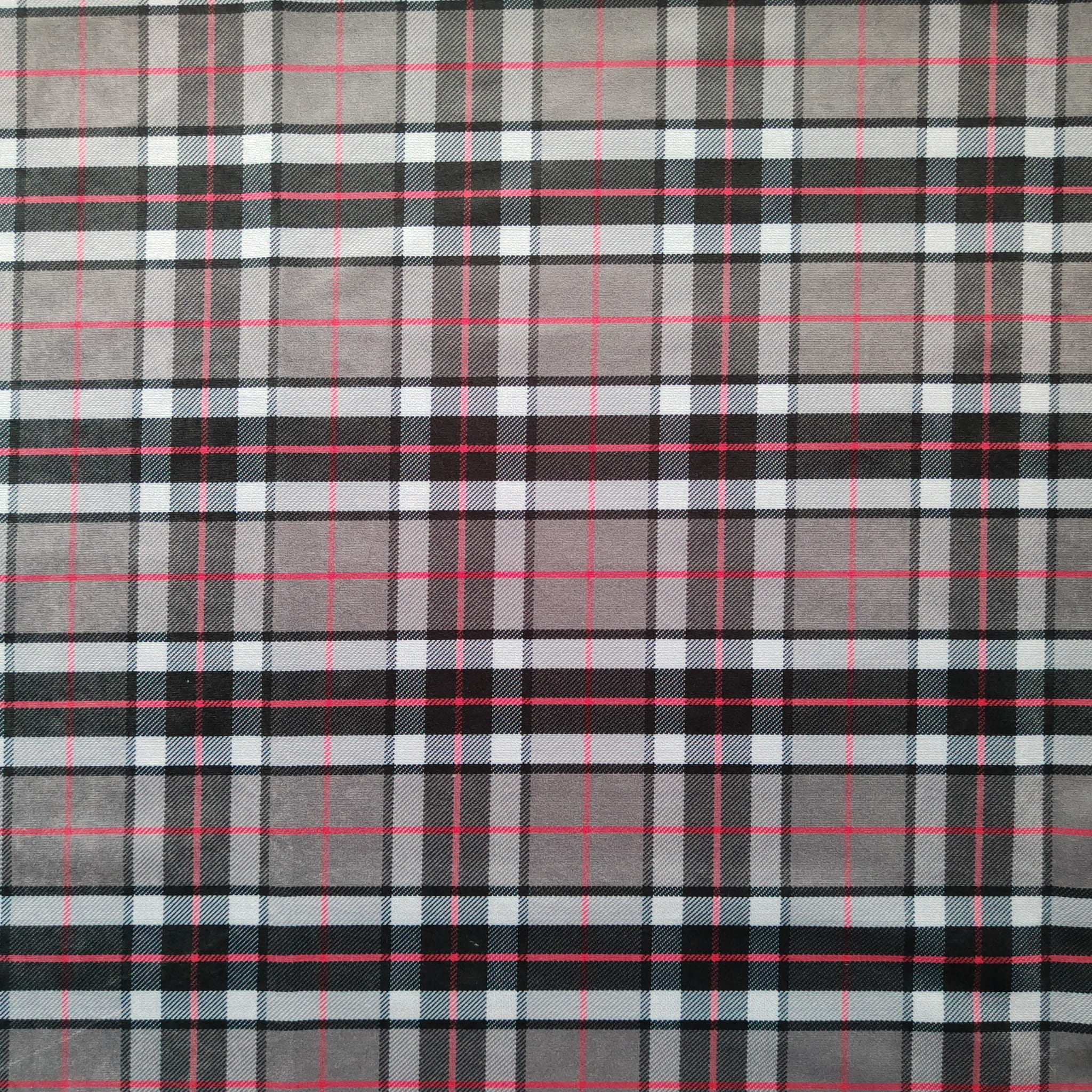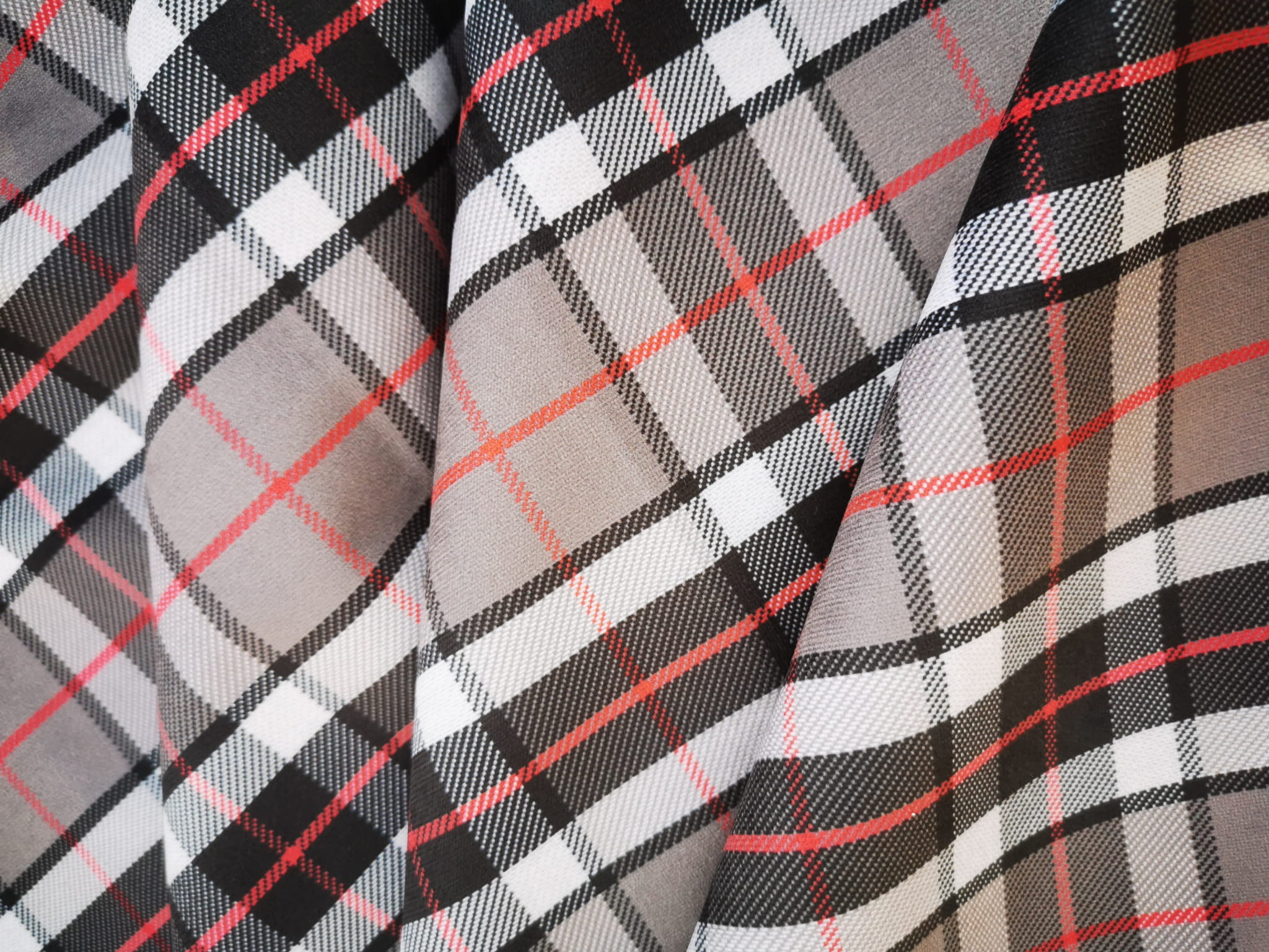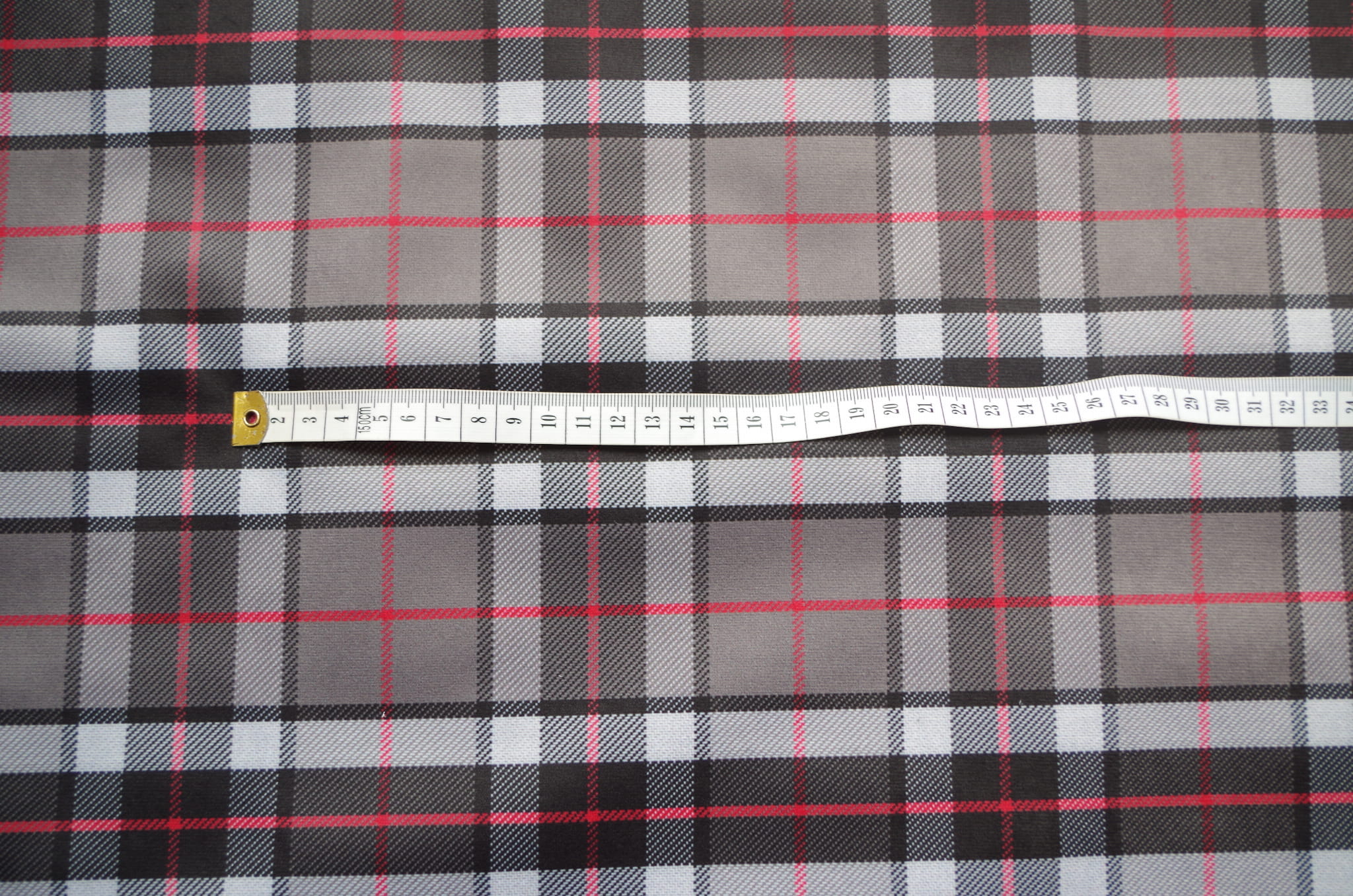 Tkanina tapicerska z ponadczasowym wzorem szkockiej kraty w kolorze szarym.
