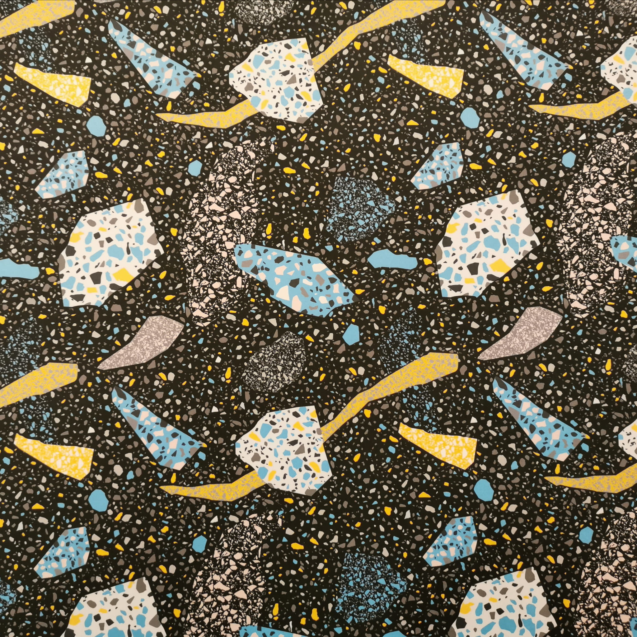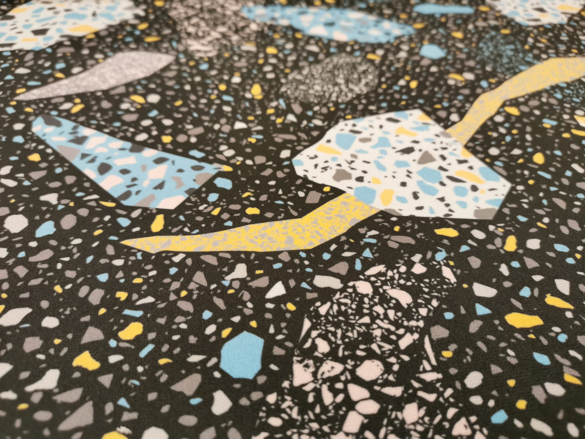 Tkanina tapicerska welur drukowany z wzorem, który bardzo Cię zaskoczy! Lastriko to powrót do przeszłości w nowoczesnym wydaniu, któremu nie sposób się oprzeć. Kolorowe plamki na czarnym tle to obecnie najnowszy trend w dekoracji i wyposażeniu wnętrz. Jeśli chcesz poczuć oddech przeszłości, a jednocześnie podążać za trendami - LASTRIKO jest dla Ciebie!
