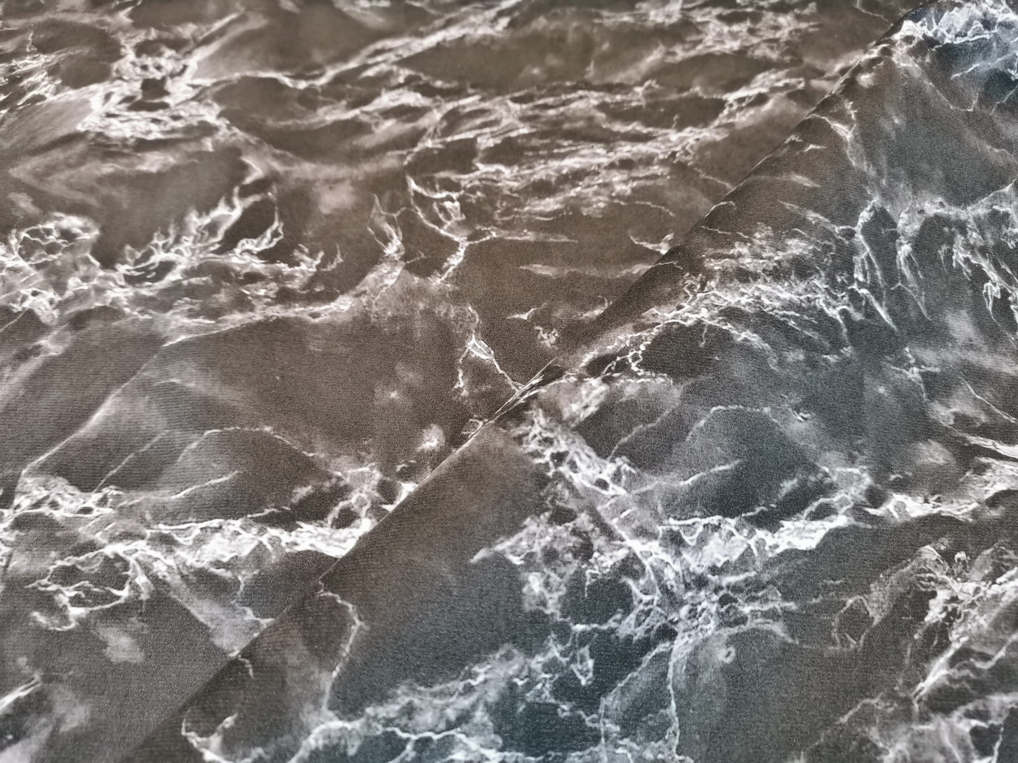 Tkanina tapicerska welur drukowany z nowoczesnym wzorem białego marmuru.