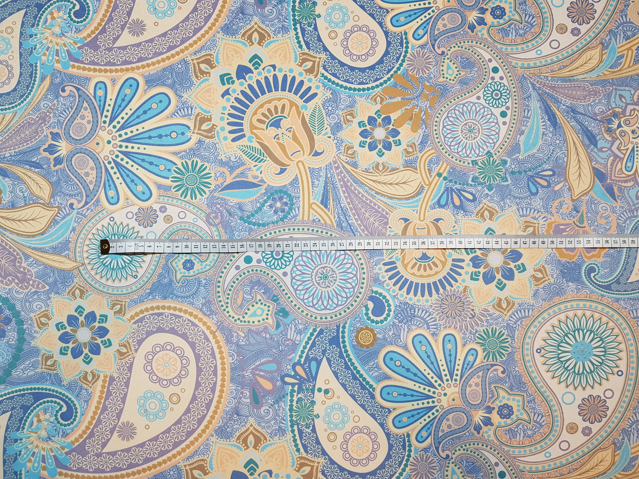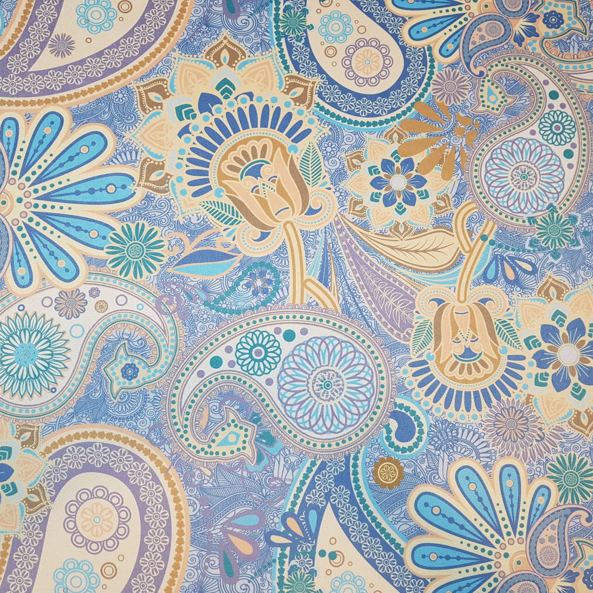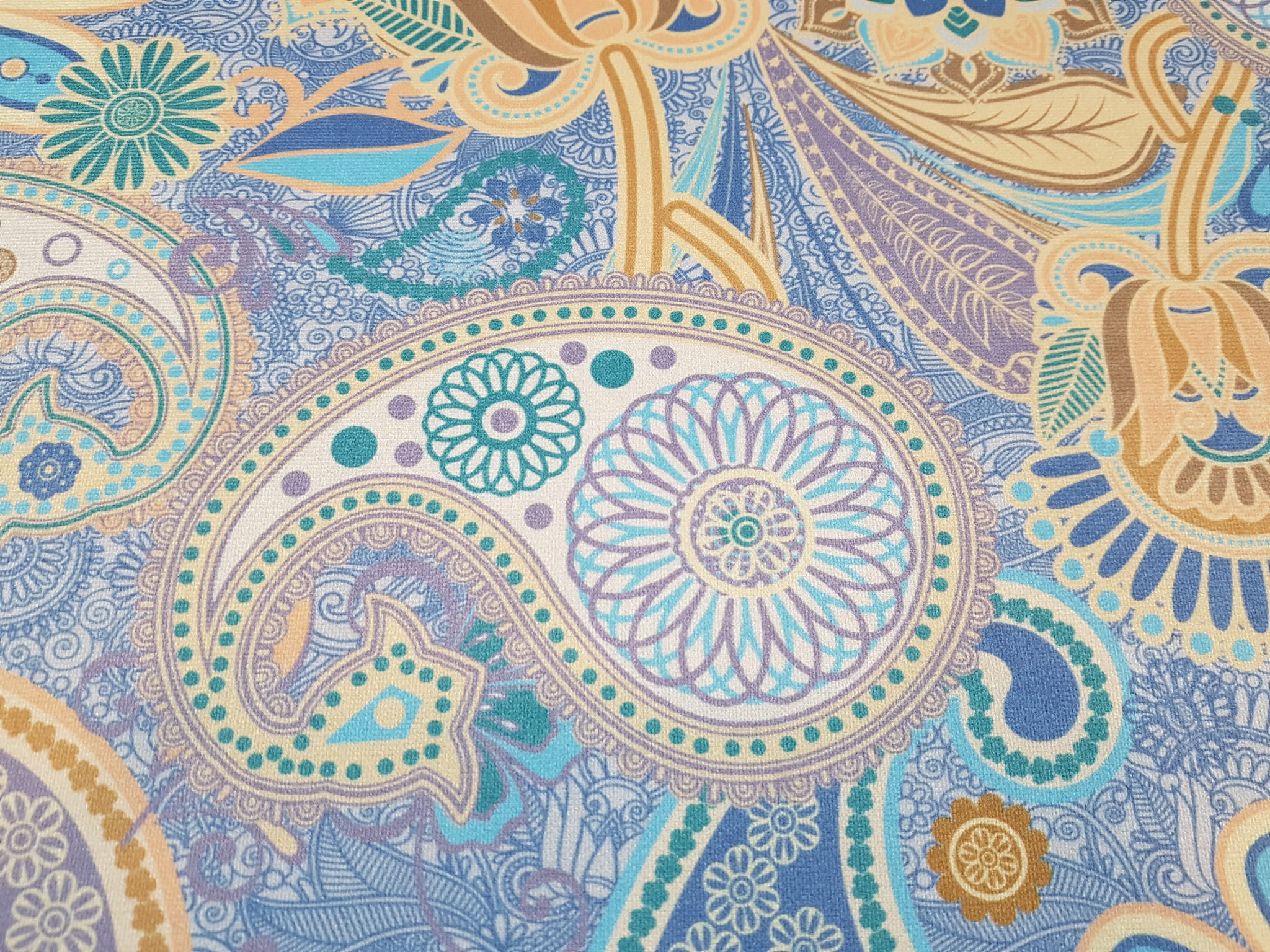Tkanina tapicerska welur drukowany z nowoczesnym orientalnym wzorem Paisley.