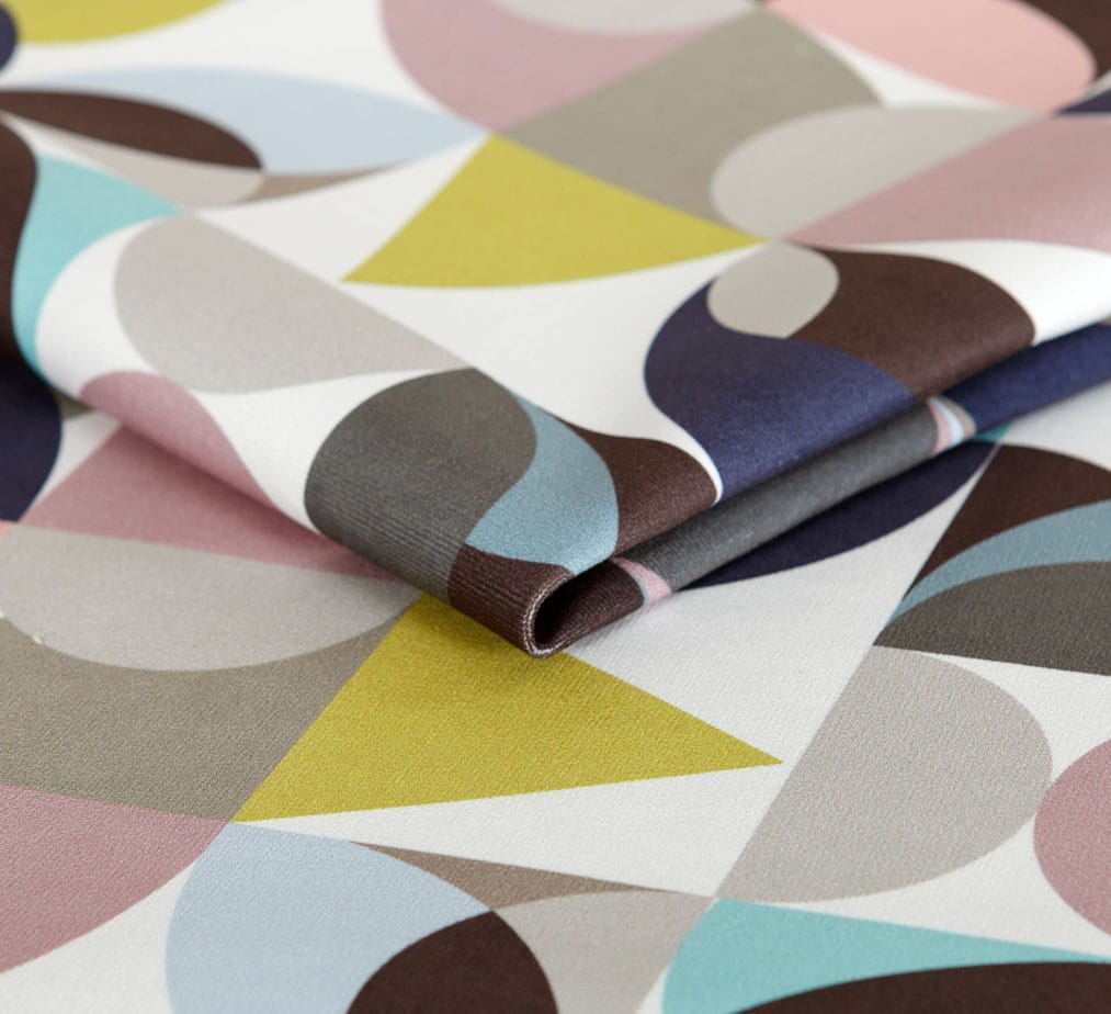Niezwykle nowoczesna tkanina tapicerska w geometryczne wzory w różnorodnych kolorach.
