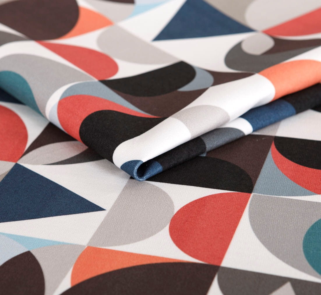 Niezwykle nowoczesna tkanina tapicerska w geometryczne wzory w różnorodnych kolorach.