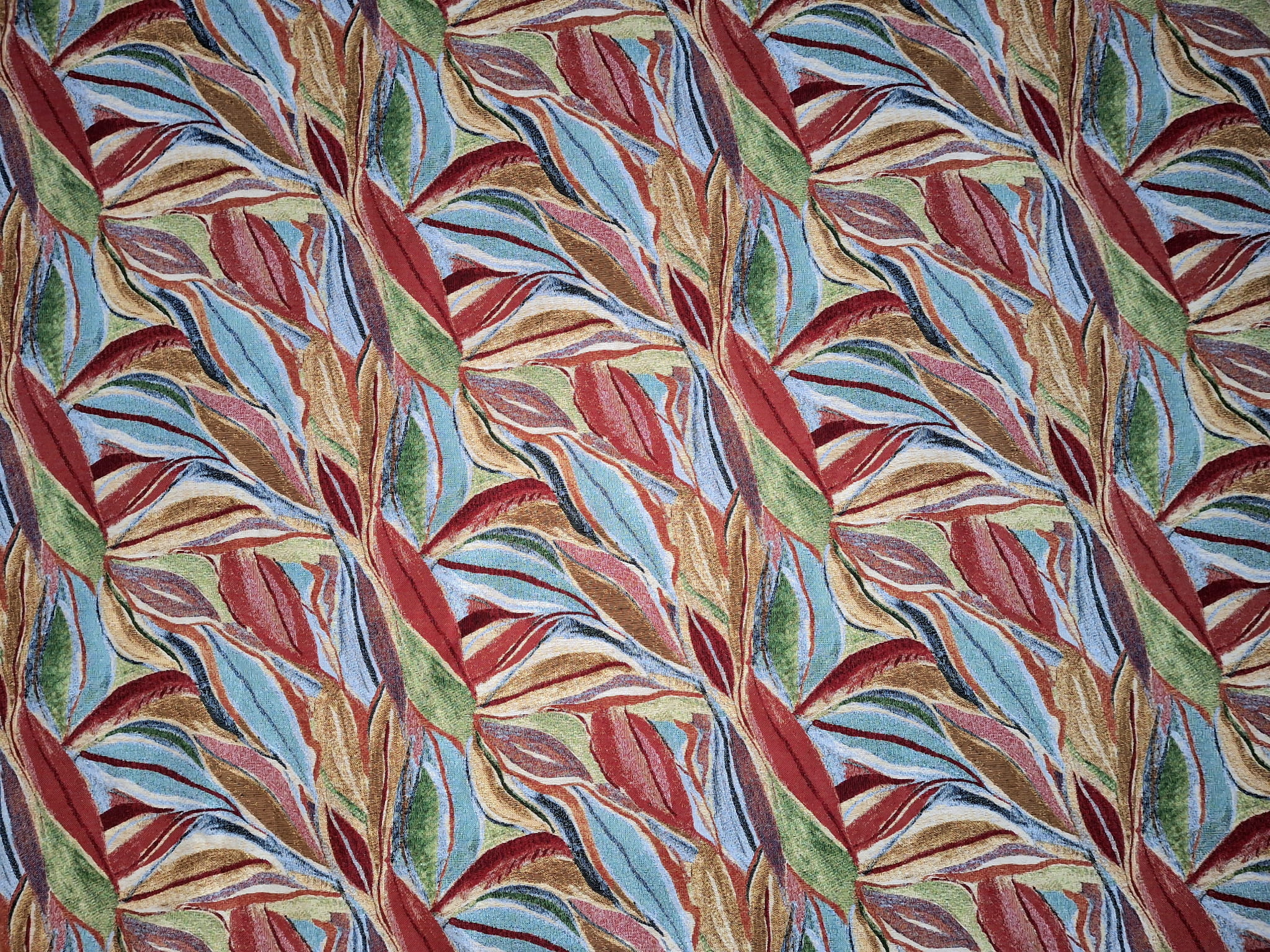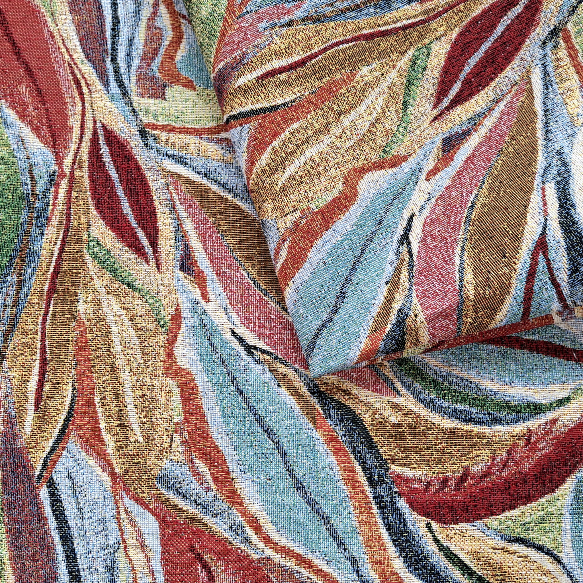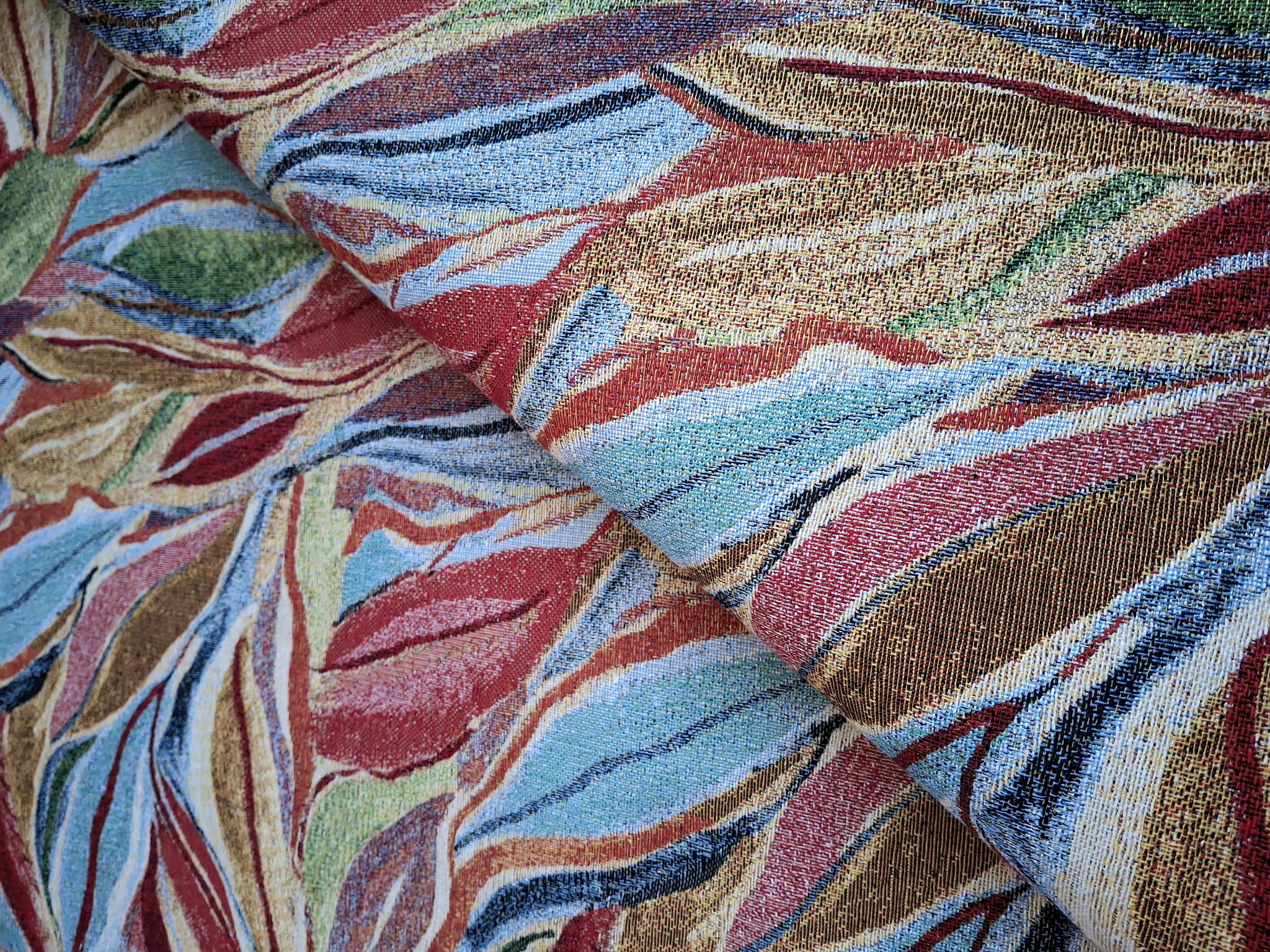 Unikatowa tkanina żakardowa we wzór kolorowych liści w intensywnych kolorach.